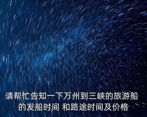 貴壩做游輪到貴池多久,請幫忙告知一下萬州到三峽的旅游船 的發船時間 和路途時間及價格